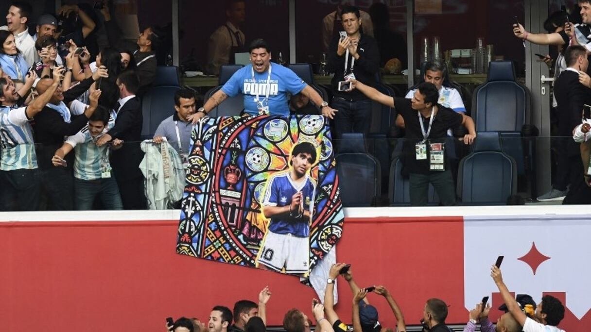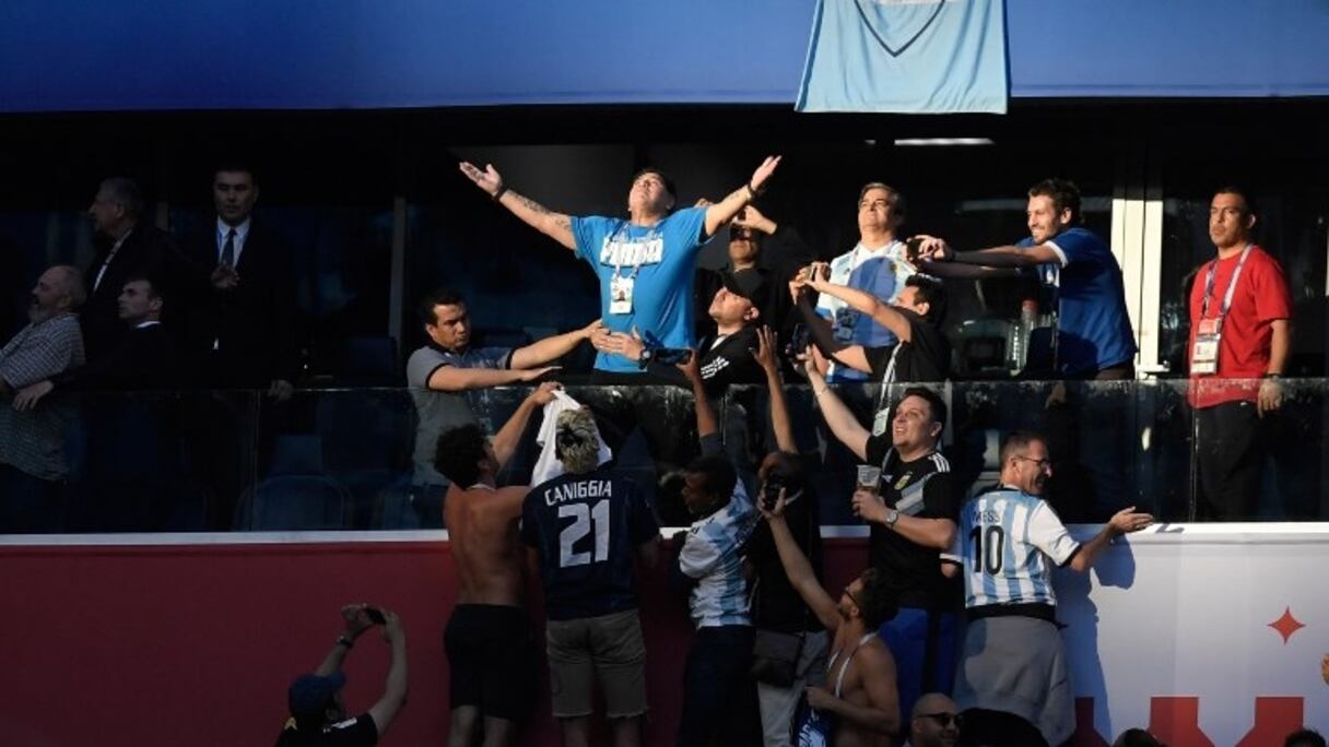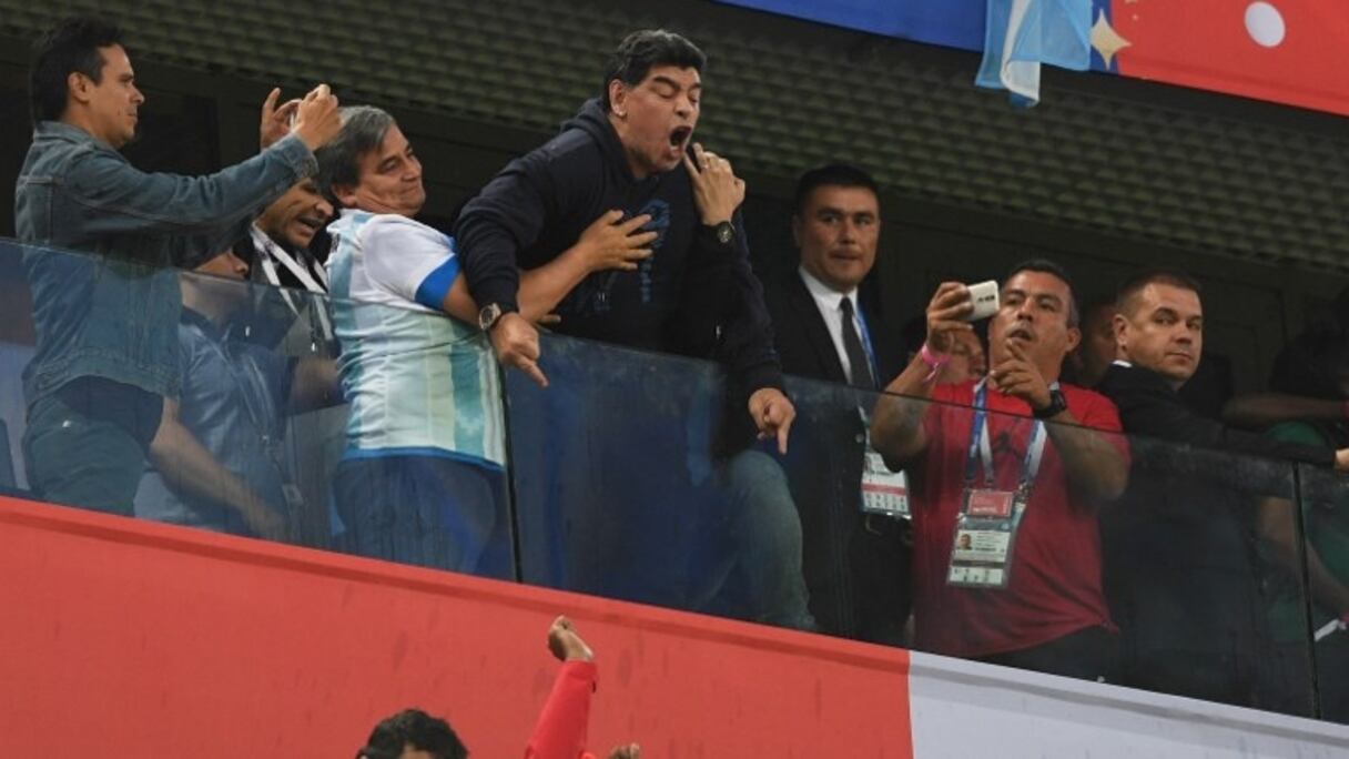 La rencontre de l'Argentine et le Nigeria était pleine d'émotions pour le "Pipe de Oro". Alternant danse avec une supportrice nigériane, célébration euphorique, doigts d'honneur brandis à la caméra pour célébrer le but victorieux... Diego Maradona s'est donné en spectacle dans les tribunes.
