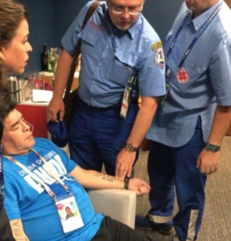 Selon le quotidien sportif argentin, Olé, sur son site internet, l'ancien N.10 a été victime d'un "pic de pression" qui lui a causé "une douleur à la nuque", avant d'être soigné et de reprendre sa place en tribunes pour la seconde période.