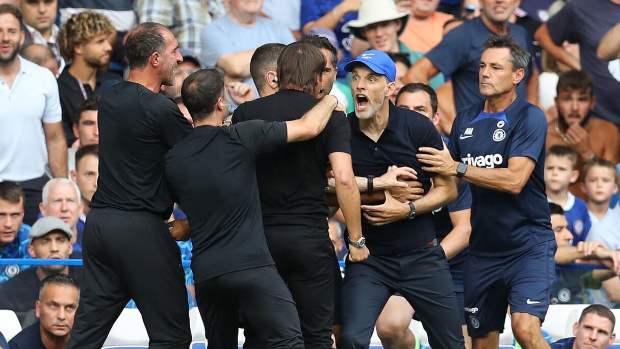 Déjà après le premier but de Tottenham, les deux techniciens s'étaient empoignés, lorsque l'Italien était venu célébrer face au banc des Blues, avec défiance, ce qui n'avait pas plu à son homologue, prompt pour réagir avant d'être rattrapé par ses adjoints. Les deux hommes avaient déjà reçu un carton jaune à l'issue de cet épisode.