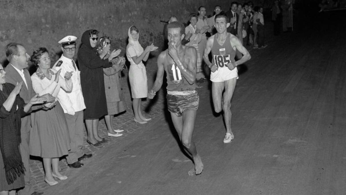 En surgissant en premier du fond de la nuit sur la voie Appienne éclairée par des torches, Bikila a changé la face du sport. Il est le premier champion olympique de l'Afrique noire, le premier d'une longue lignée.