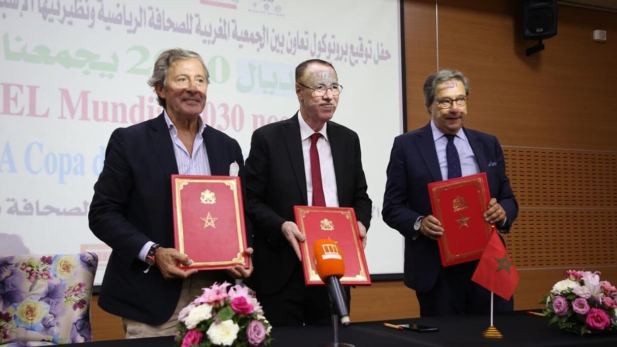 Les trois associations de presse sportive, à savoir l’Association Marocaine de la Presse Sportive (AMPS), l’Association Espagnole de la Presse Sportive (AEPD) et l’Association Portugaise de la Presse Sportive (CNID), ont signé, ce mercredi 18 septembre à Tanger, un protocole de coopération en prévision de la Coupe du Monde 2030, co-organisée par le Maroc, l’Espagne et le Portugal.