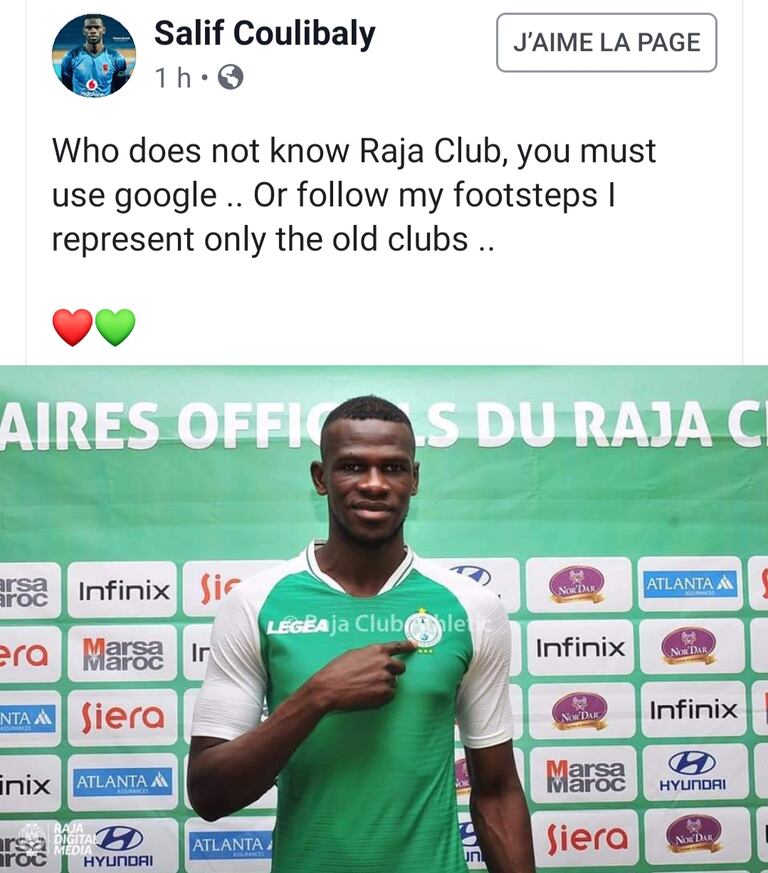 En effet, la nouvelle recrue du Raja n’a pas hésité à remettre le principal concerné à sa place à travers une publication sur son compte Facebook. Le défenseur malien a déclaré : «"Qui ne connaît pas le Raja devrait utiliser google ... Ou suivez mes traces, je ne représente que les clubs de légende." Un tacle bien maîtrisé.