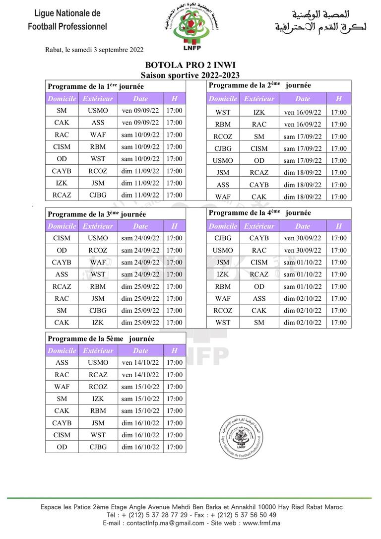 Dans un communiqué publié, ce samedi 3 septembre, sur le site internet de la Fédération royale marocaine de football (FRMF), la Ligue nationale de football professionnel (LNFP) a annoncé la date du démarrage de la Botola Pro D2 Inwi.