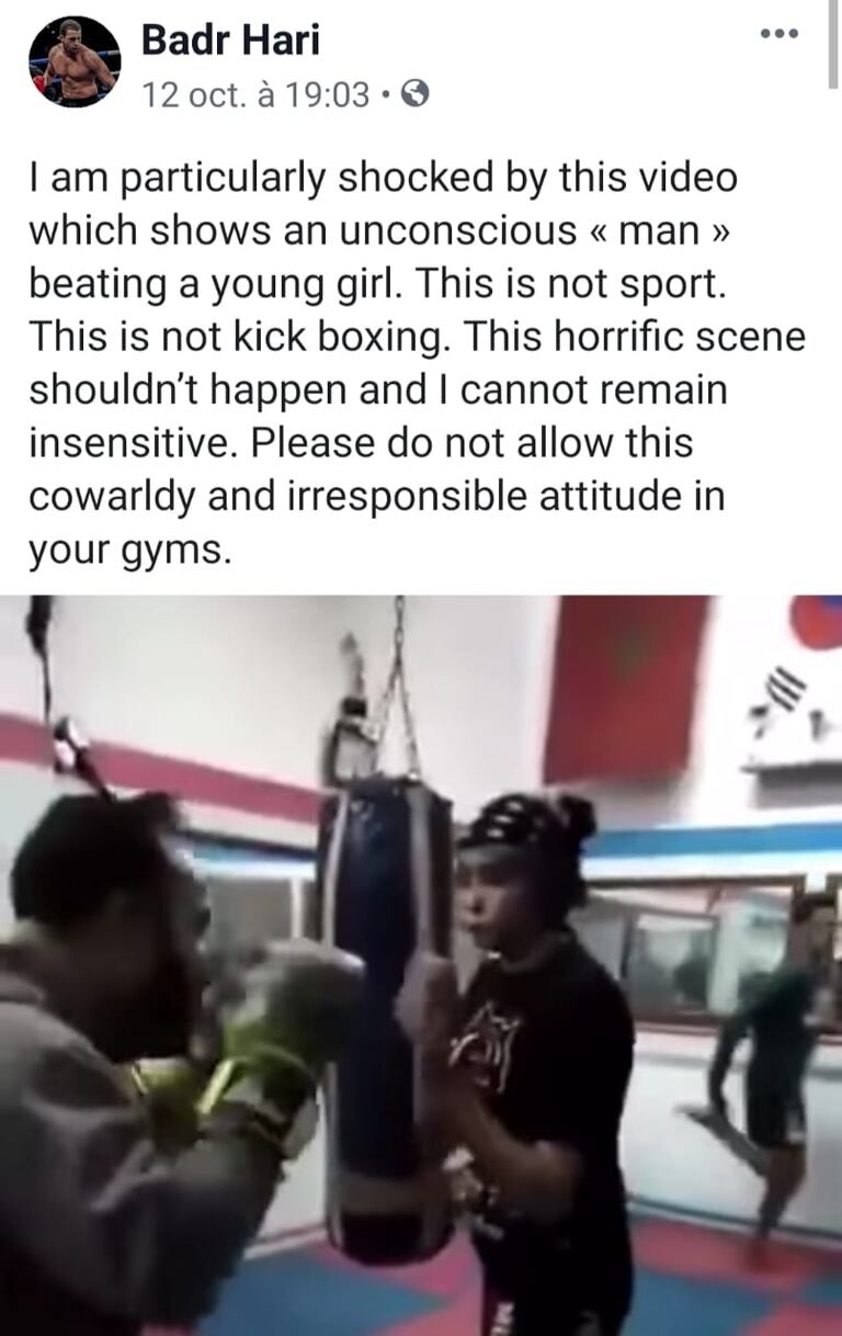 Le champion marocain de kick-boxing Badr Hari a vivement réagi à cette vidéo en publiant un message sur sa page facebook: "Je suis particulièrement choqué par cette vidéo, qui montre un homme inconscient tabassant une jeune fille. Ce n’est pas du sport, ce n’est pas du kickboxing. Cette scène horrible ne devrait pas se produire et je ne peux rester insensible. S'il vous plaît n’autorisez pas cette attitude irresponsable dans vos salles de sport."
