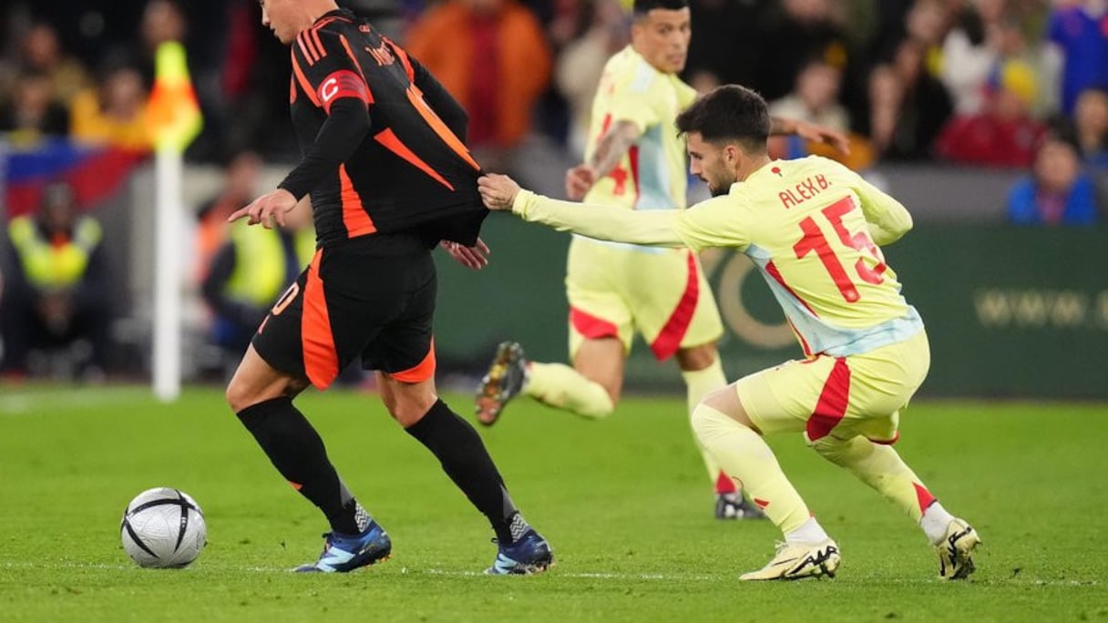 Le milieu de terrain espagnol renforcé par des éléments d'expérience comme Sarabia ou Merino, parvenait néanmoins à couper les lignes de passe vers le capitaine des Cafeteros Luis Diaz.
