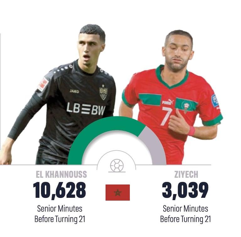 A ce titre, l’étude souligne que Bilal El Khannouss a déjà dépassé la barre des 10.000 minutes jouées avant même d’atteindre l’âge de 21 ans. En comparaison, Hakim Ziyech avait disputé un peu plus de 3.000 minutes avant cet âge. Signe que les choses évoluent rapidement.