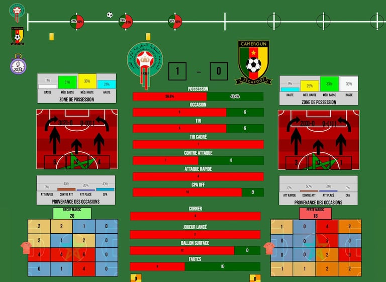 Privés de solutions à l’intérieur, les Camerounais ont dû s’adapter: «Le Cameroun a été contraint de jouer long», note l’ancien international marocain, avec une défense des Lions «remportant la majorité des duels aériens». Une donnée clé dans le rapport de force, tant le secteur central a été verrouillé.
