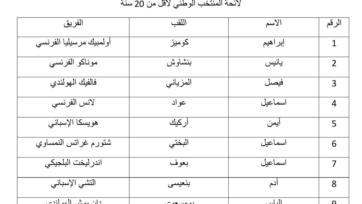 A cet effet, le sélectionneur national des U20, Mohamed Ouahbi, a fait appel à 30 joueurs dont 23 évoluent à l’étranger (France, Pays-Bas, Italie, Portugal, Belgique).