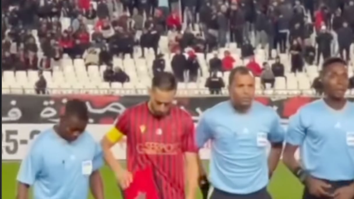 Au moment de poser aux côtés des arbitres, les images montrent le capitaine algérien tentant de placer derrière son dos le fanion safiot discrètement, sur lequel figurent au recto le logo du club et, au verso, le drapeau marocain.