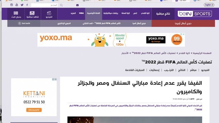 Pour sa part, la sélection du Sénégal a écopé d'un match à huis-clos, et sa fédération d'une amende, sanctions infligées par la FIFA pour les incidents survenus lors du barrage retour des qualifications pour le Mondial-2022, Sénégal-Egypte (1-0, 3 t.a.b. à 1), le 29 mars à Dakar.