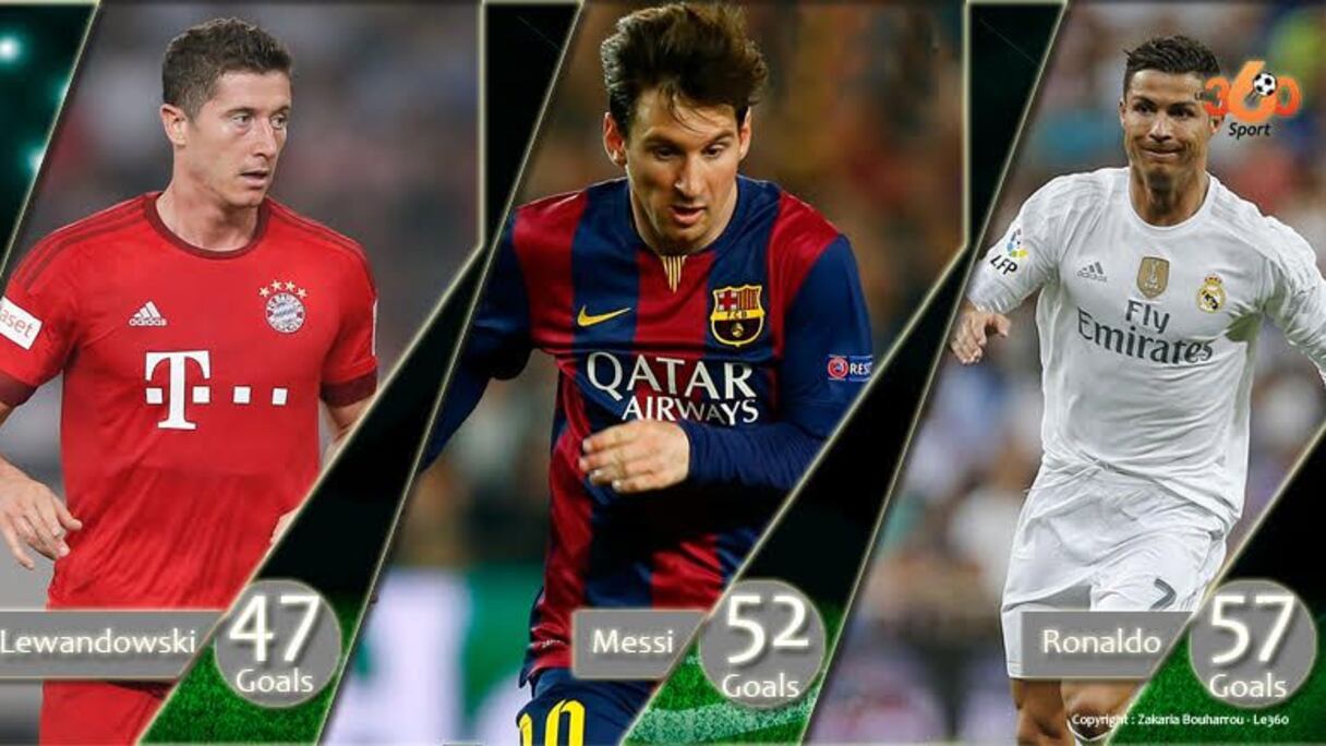 Le Portugais du Real Madrid a marqué en 2015 57 buts en 57 rencontres. Soit un but par match. Son rival argentin, Lionel Messi, arrive en seconde place avec 52 buts. R. Lewandowsky est loin derrière et occupe la troisième place avec 47 buts.