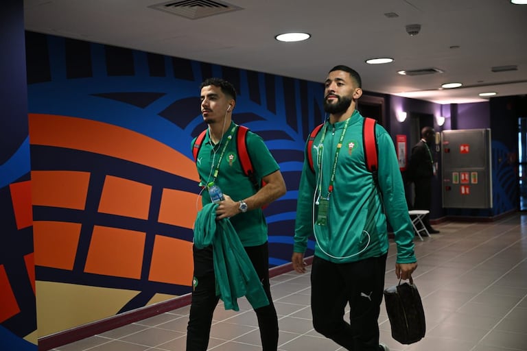 Arrivée des Lions de l'Atlas au Khalifa International Stadium (Abderrazak Hamdallah et El Mehdi Benabid)