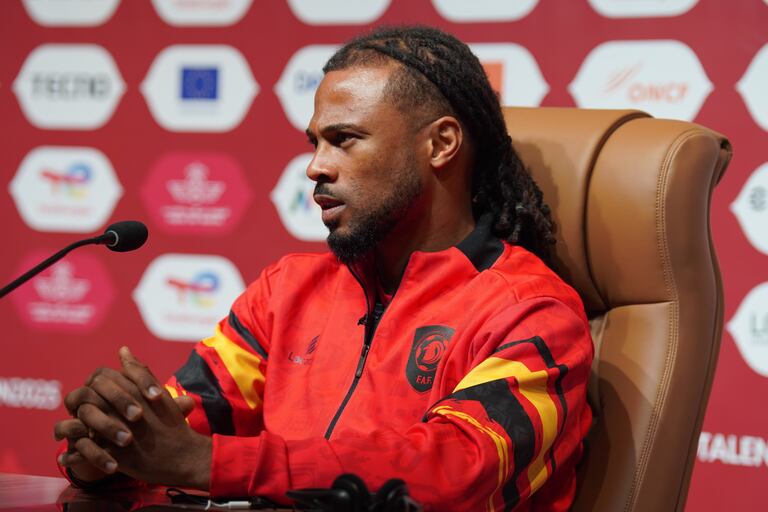 Fredy, capitaine de l'Angola en conférence de presse d'avant match contre l'Afrique du Sud à Marrakech, pour la Can 2025.