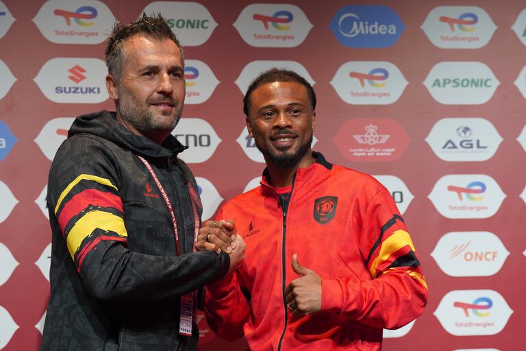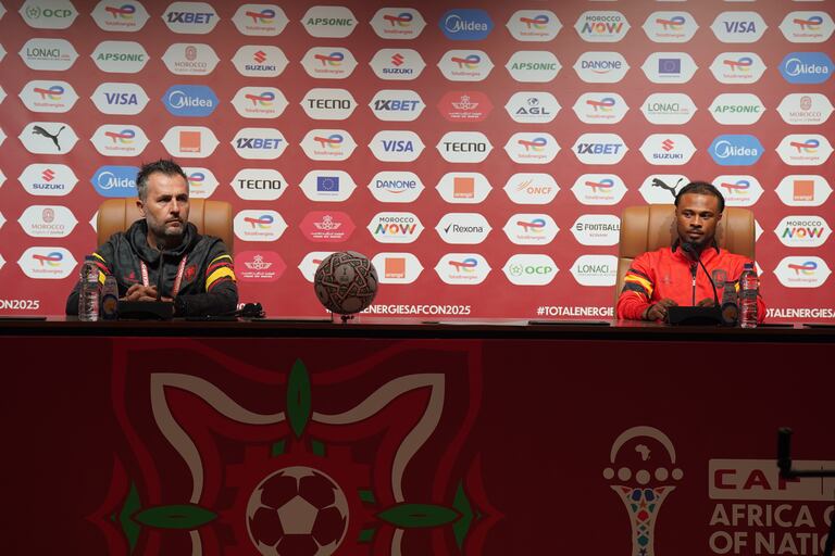 Le sélectionneur de l'Angola Patrice Beaumelle et son capitaine Fredy à Marrakech, pour la Can 2025.