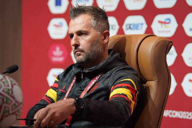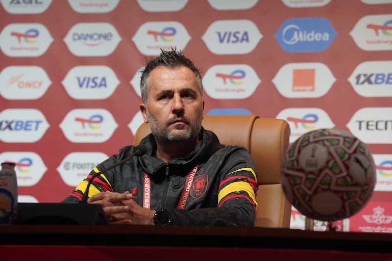 Patrice Beaumelle, sélectionneur de l'Angola, en conférence de presse d'avant match contre l'Afrique du Sud à Marrakech, pour la Can 2025.