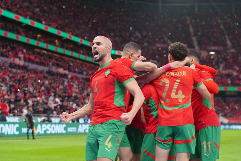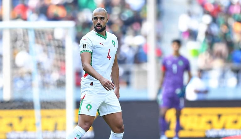 (DR)Sofyan Amrabat et les Lions de l'Atlas contre les Comores, lors de la première journée de la phase de groupes de la CAN 2025, au Stade Moulay Abdellah.