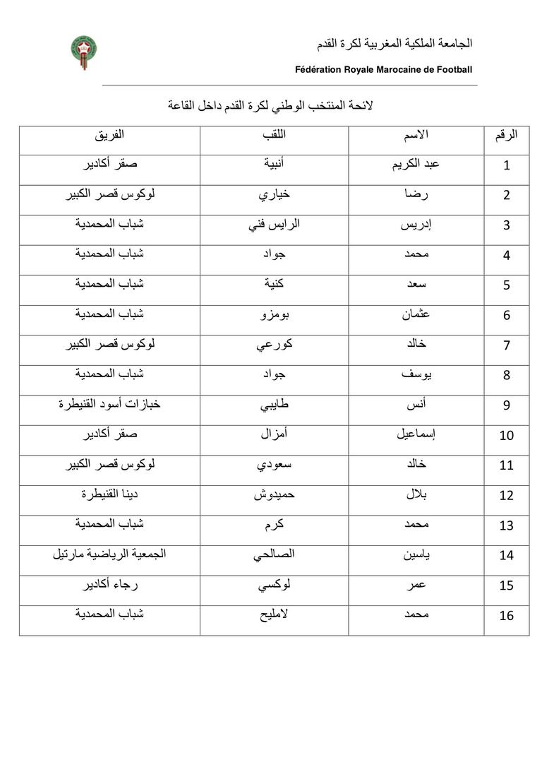 Ce stage entre dans le cadre des préparations du team nationale pour les futurs échéances. A cet effet, l’entraineur national Hicham Dguig a fait appel à seize joueurs.