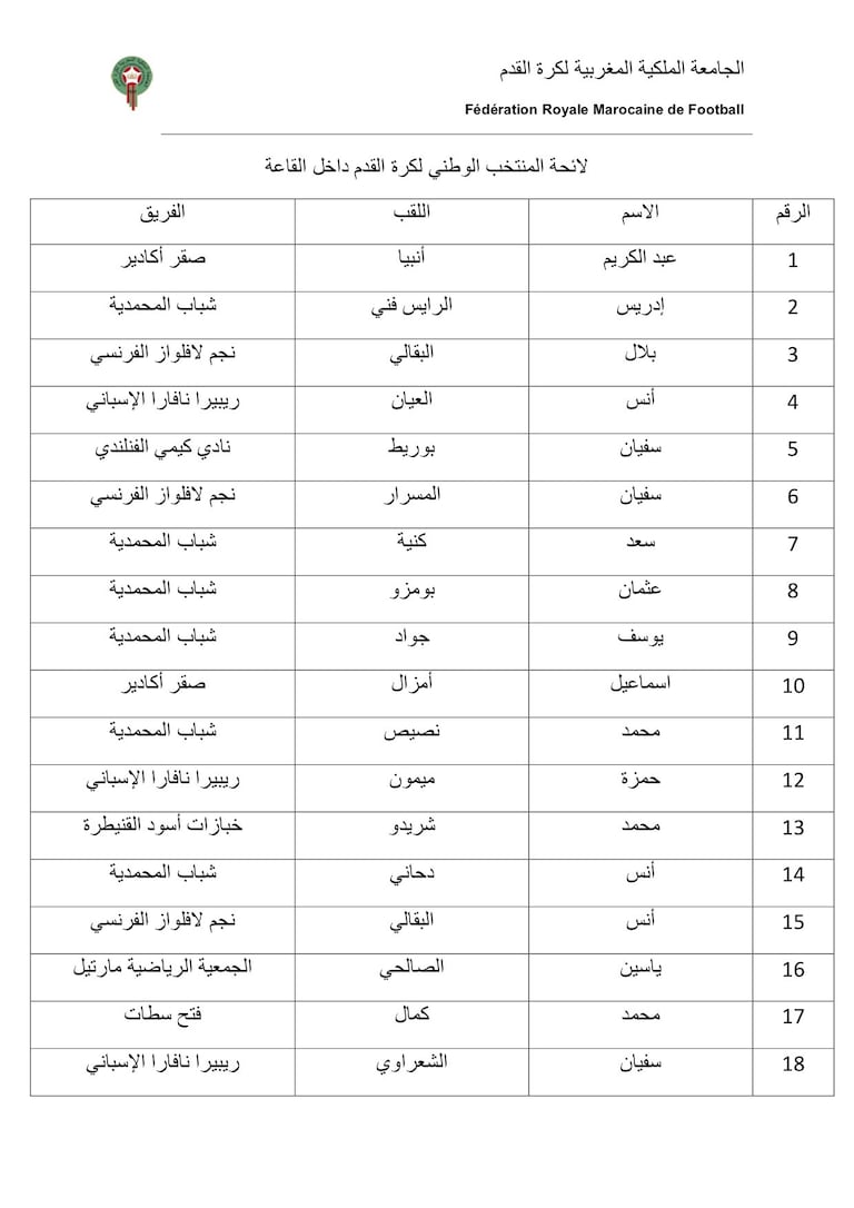 22 joueurs dont certains évoluant à l’étranger ont été convoqués par Hicham Dguig pour le prochain stage de la sélection marocaine de futsal en perspective des trois prochains matchs amicaux.