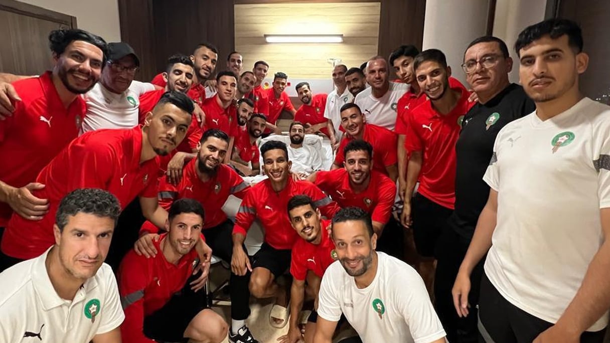 Les joueurs et les membres du staff technique de l'équipe nationale ont rendu visite au capitaine Bekkali après la réussite de son opération à la cheville.